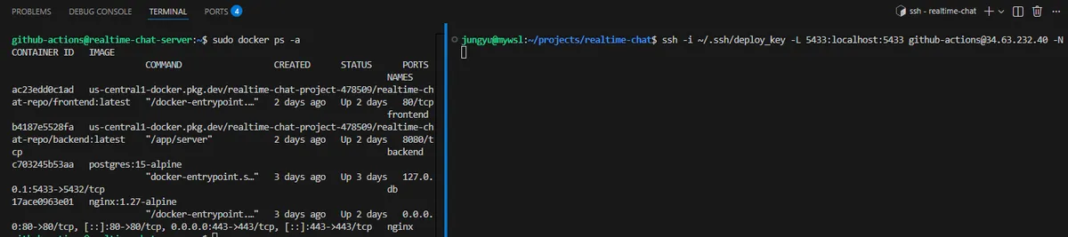 (트러블슈팅: VM 내부의 DB 컨테이너가 127.0.0.1 인터페이스로 포트를 노출하도록 설정해야 터널링이 정상 작동함을 확인했다.)